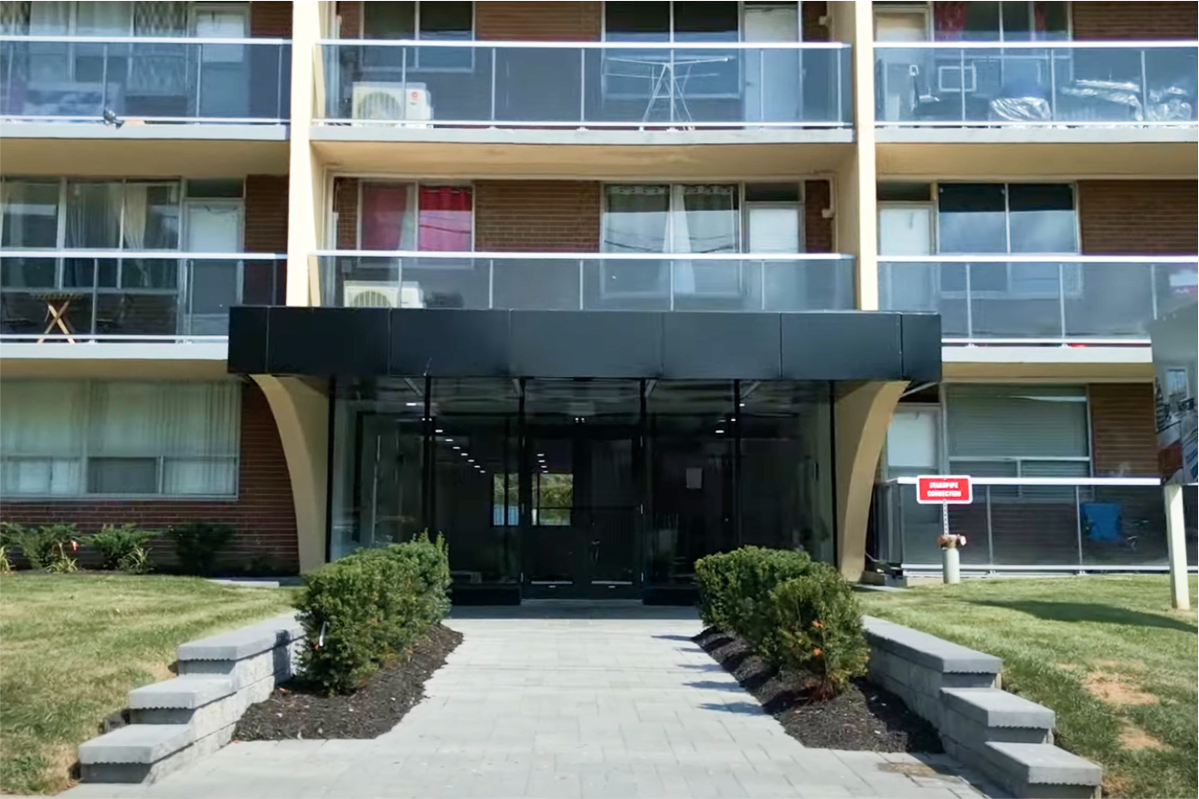 Xcel Construction completed a full front entrance rehabilitation, featuring a new window and door vestibule system, updated paneling and flashing, fresh paint, and revitalized interlocking and landscaping. The result is a welcoming, modernized entryway that blends durability, functionality, and curb appeal.